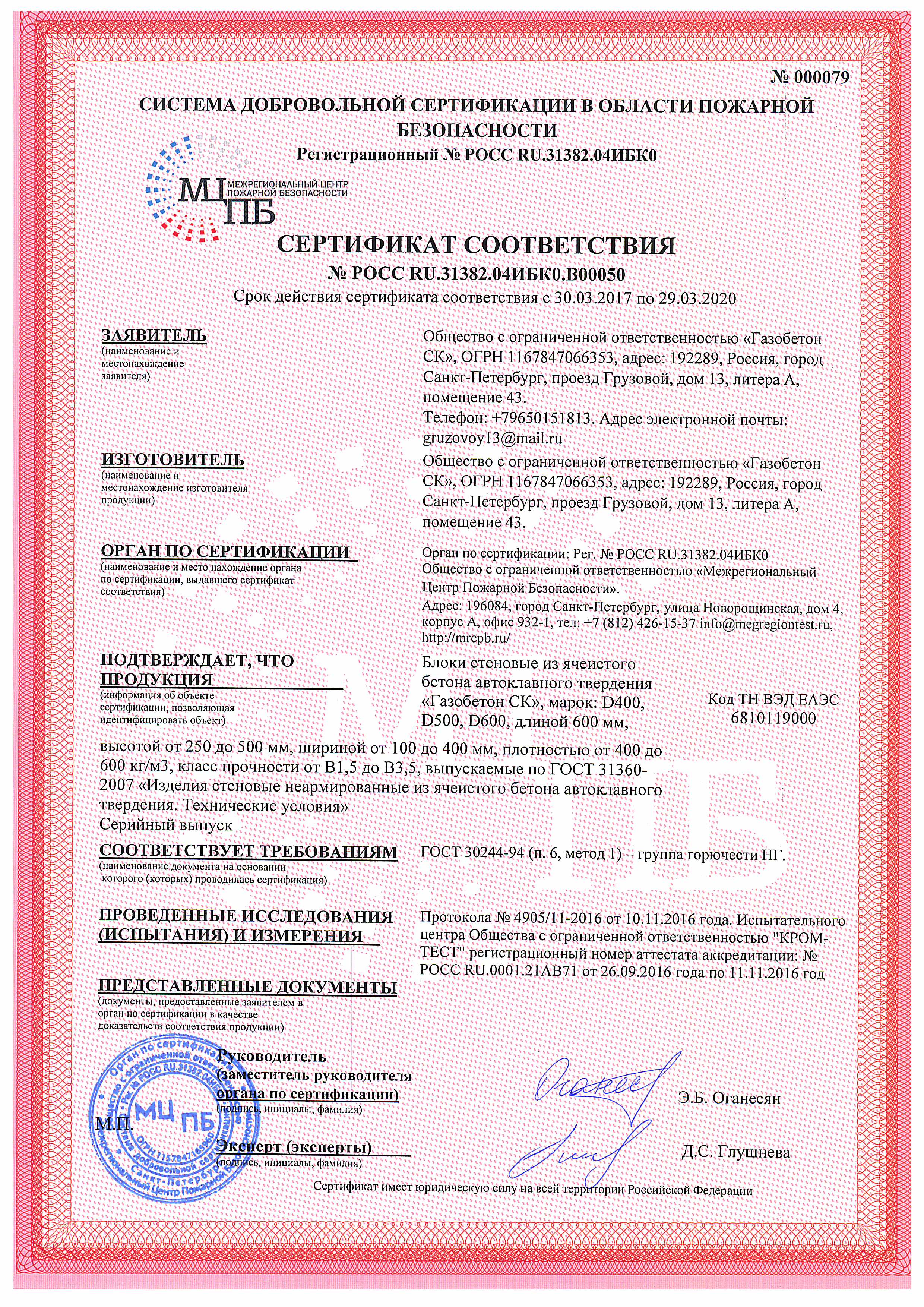 Сертификаты газобетона